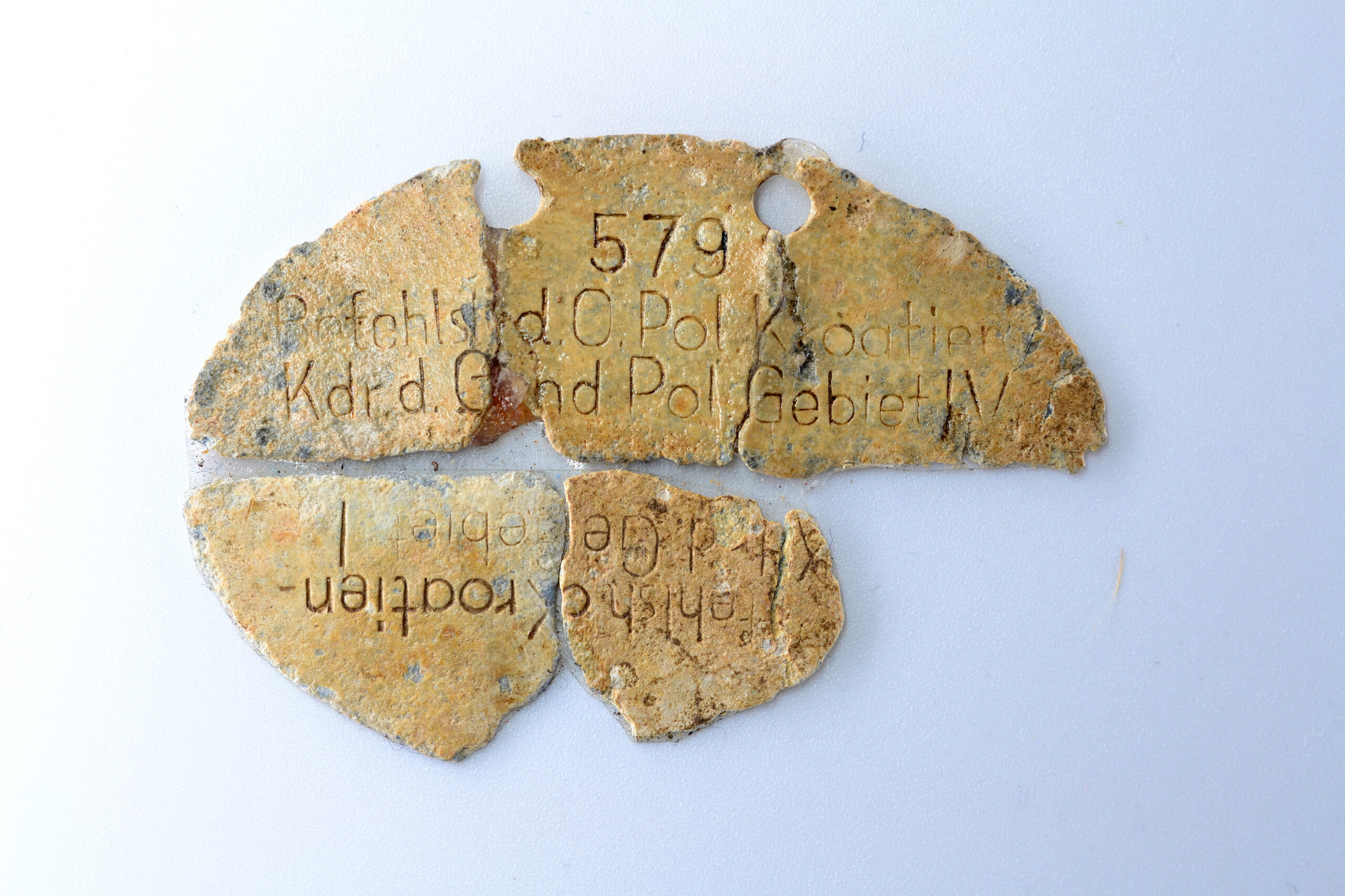 A rare, albeit broken, zinc Erkennungsmarke from a member of the Kommandeur der Gendarmerie of Polizei-Gebiet IV, which was part of the Befehlshaber der Ordnungspolizei Kroatien.