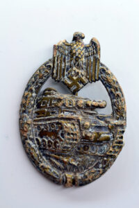 Very nice battlefield-found Panzer Assault Badge in Bronze (Panzerkampfabzeichen in Bronze), with only minor damage.