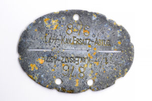 Very nice and rare zinc Erkennungsmarke from a recruit in the 1./SS-Kavallerie-Ersatz-Abteilung, which was formed in Warschau in 1941, and later moved to Posen.