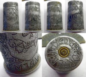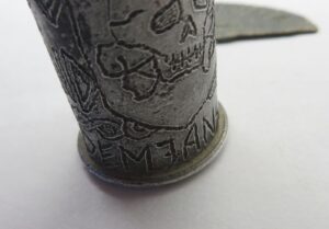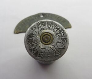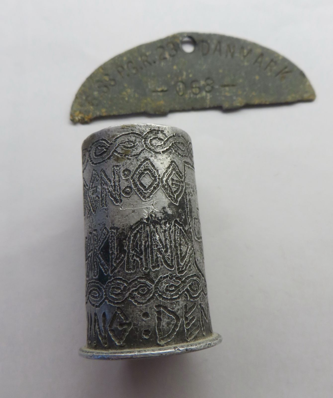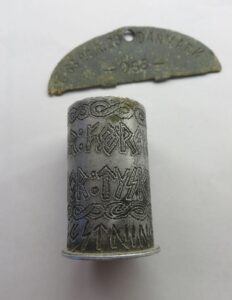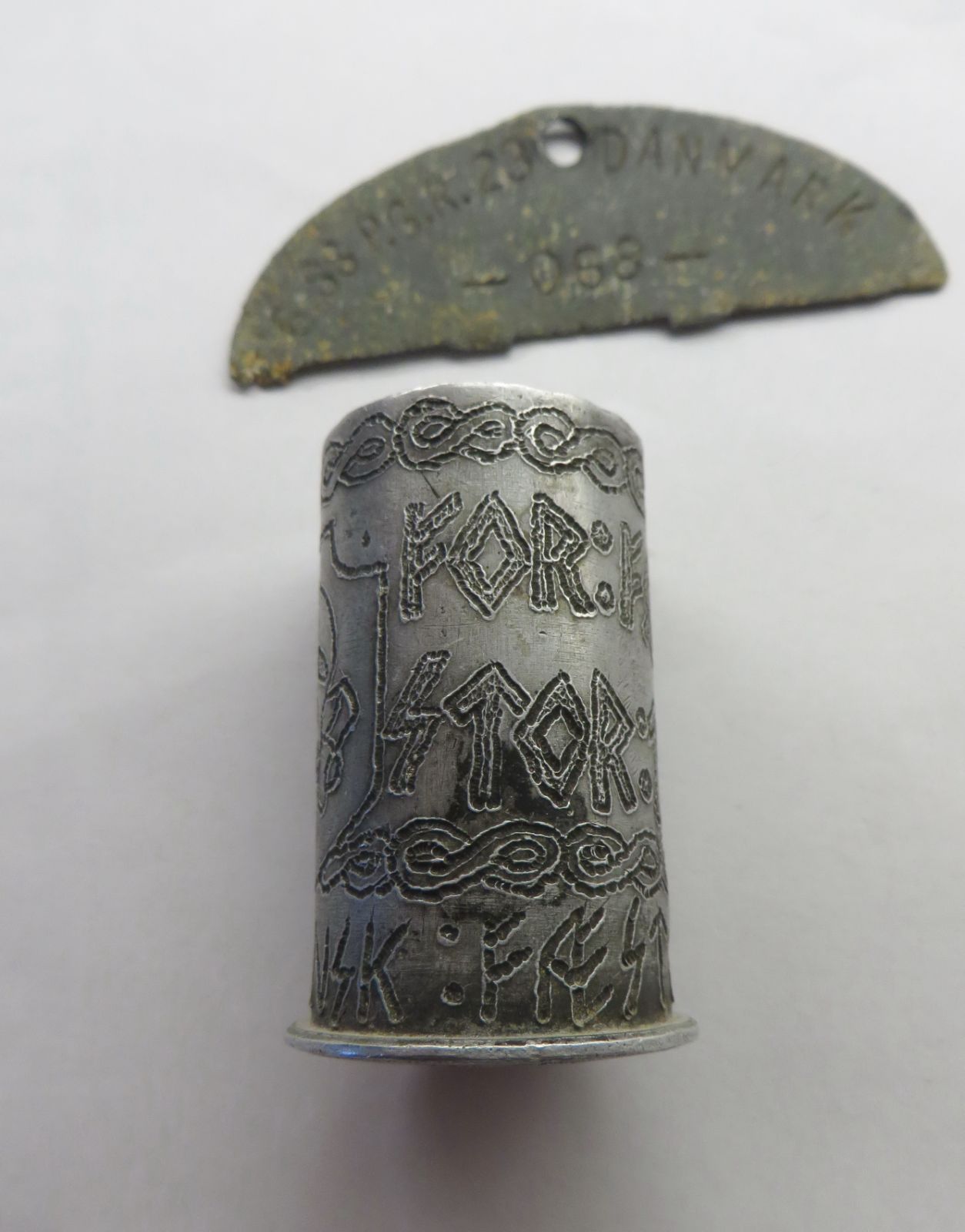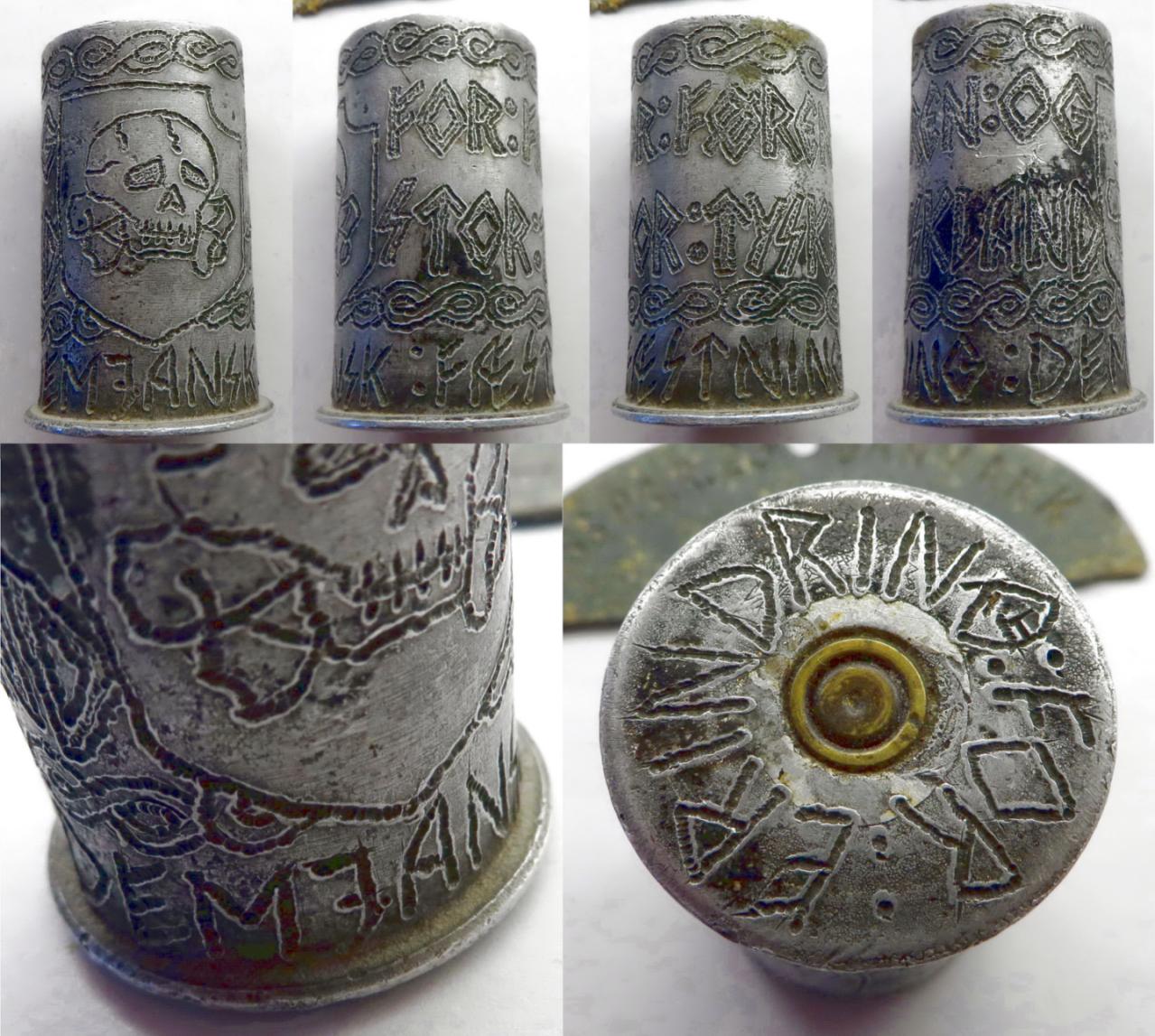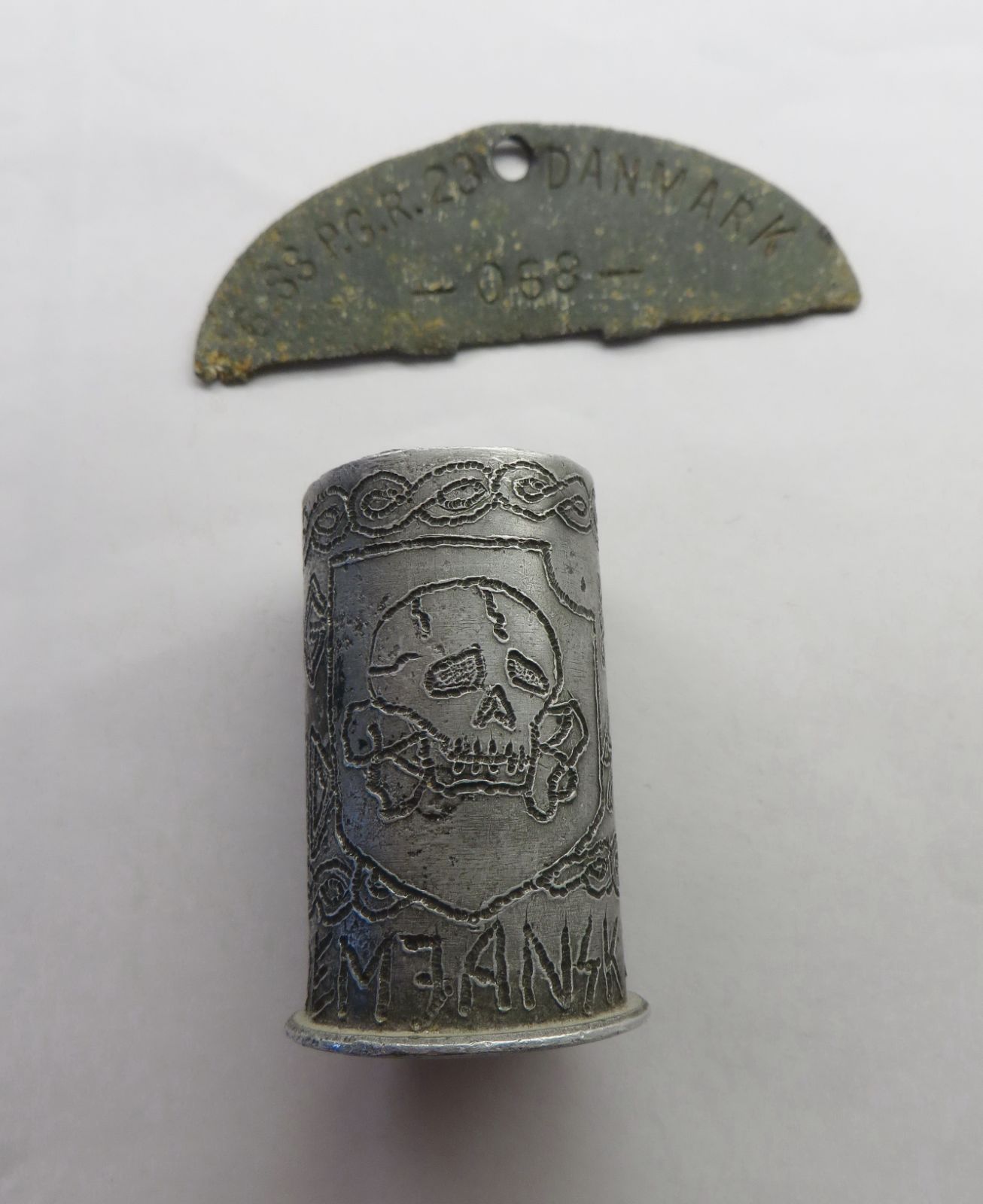 The text on the trench-art says “Fæstning Demjansk” (Demyansk fortress) and “For Erindring” (for memory). Trench-art always requires some faith, but we believe it is war-time made by a member of the SS-Freikorps Danmark, which was ressorting under the SS-Division "Totenkopf".
