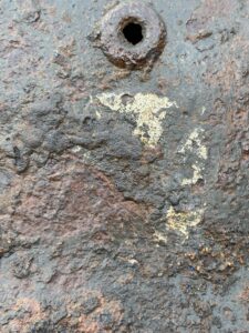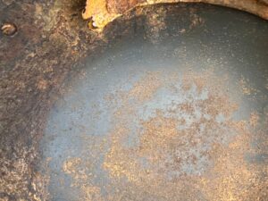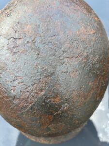 It is in very typical condition for helmets from that area. Much of the paint has been preserved, as well a big part of the runes decal. It has been cleaned professionally, and the condition is nice and solid.