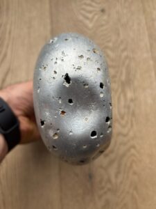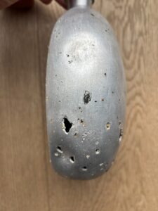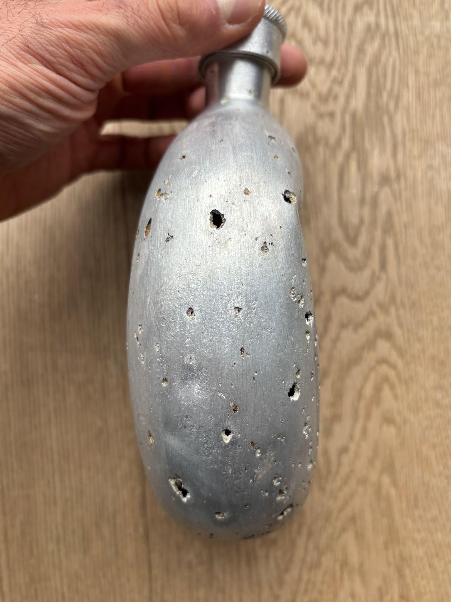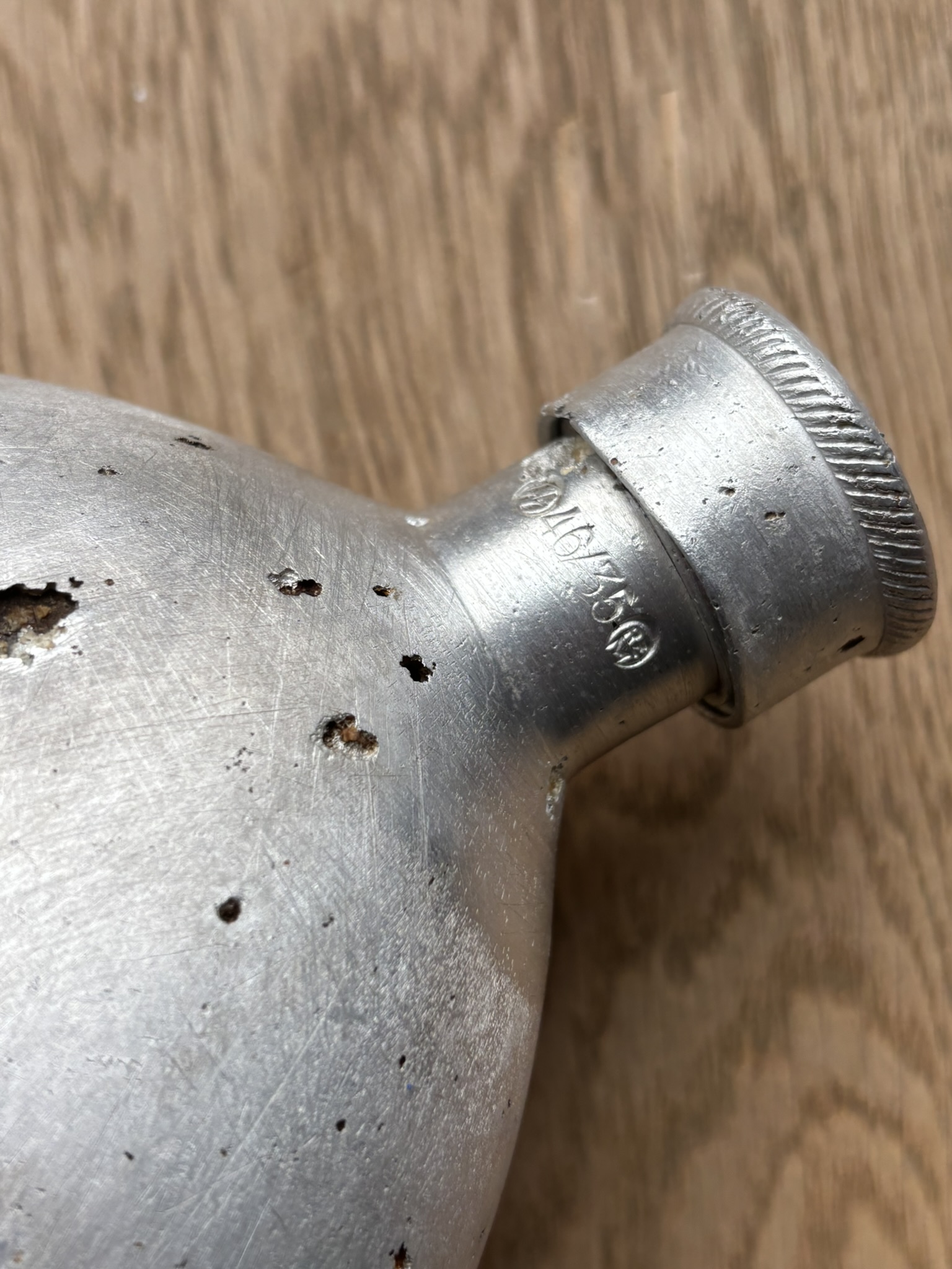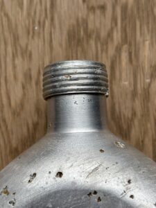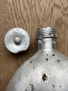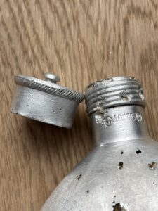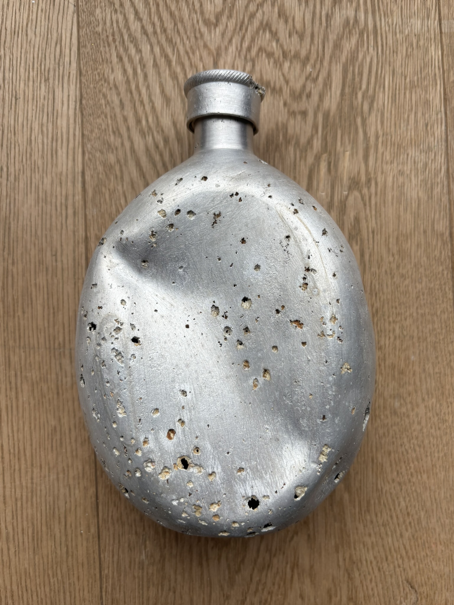 The canteen and cup are in very good condition, considering they are battlefield-found, and is rare to see SS-marked canteens, especially complete with the cup. There is damage from corrosion, but also what looks like to be battle-damage.