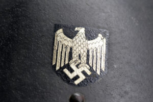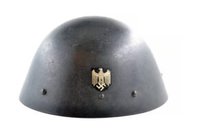 Wonderful example of a rare Wehrmacht reissued Czech M34 helmet. When the Germans invaded Czechoslovakia on 15 March 1939, they captured a lot of Czech military equipment. Czech helmets were repainted and reissued to Wehrmacht, Polizei and Luftschutz. This example was reissued to the Wehrmacht. I