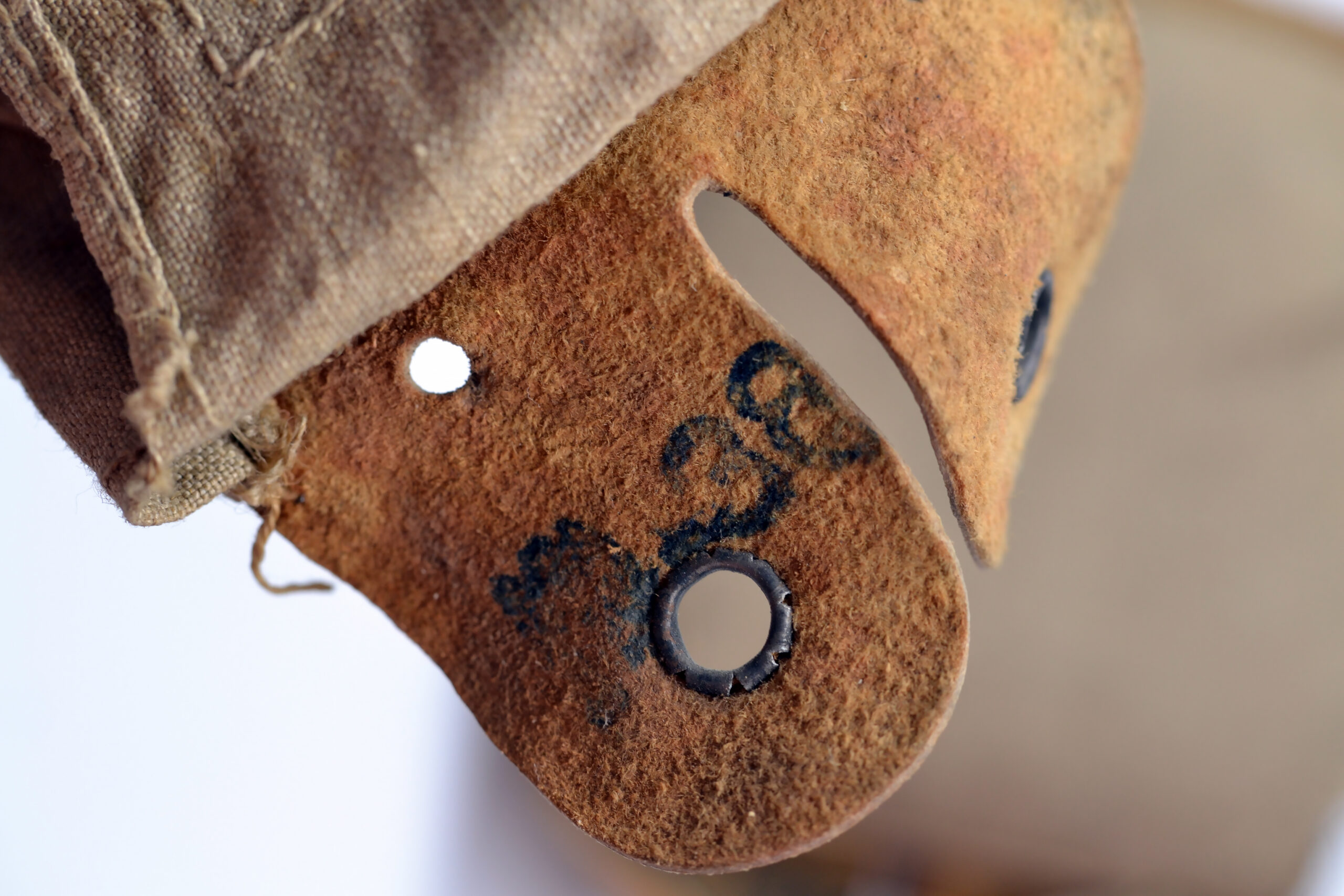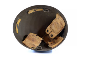 t has the classic rough-painted field-grey overpaint and a single decal attached to it. The liner is in average condition, with one liner pad missing and another one coming loose.