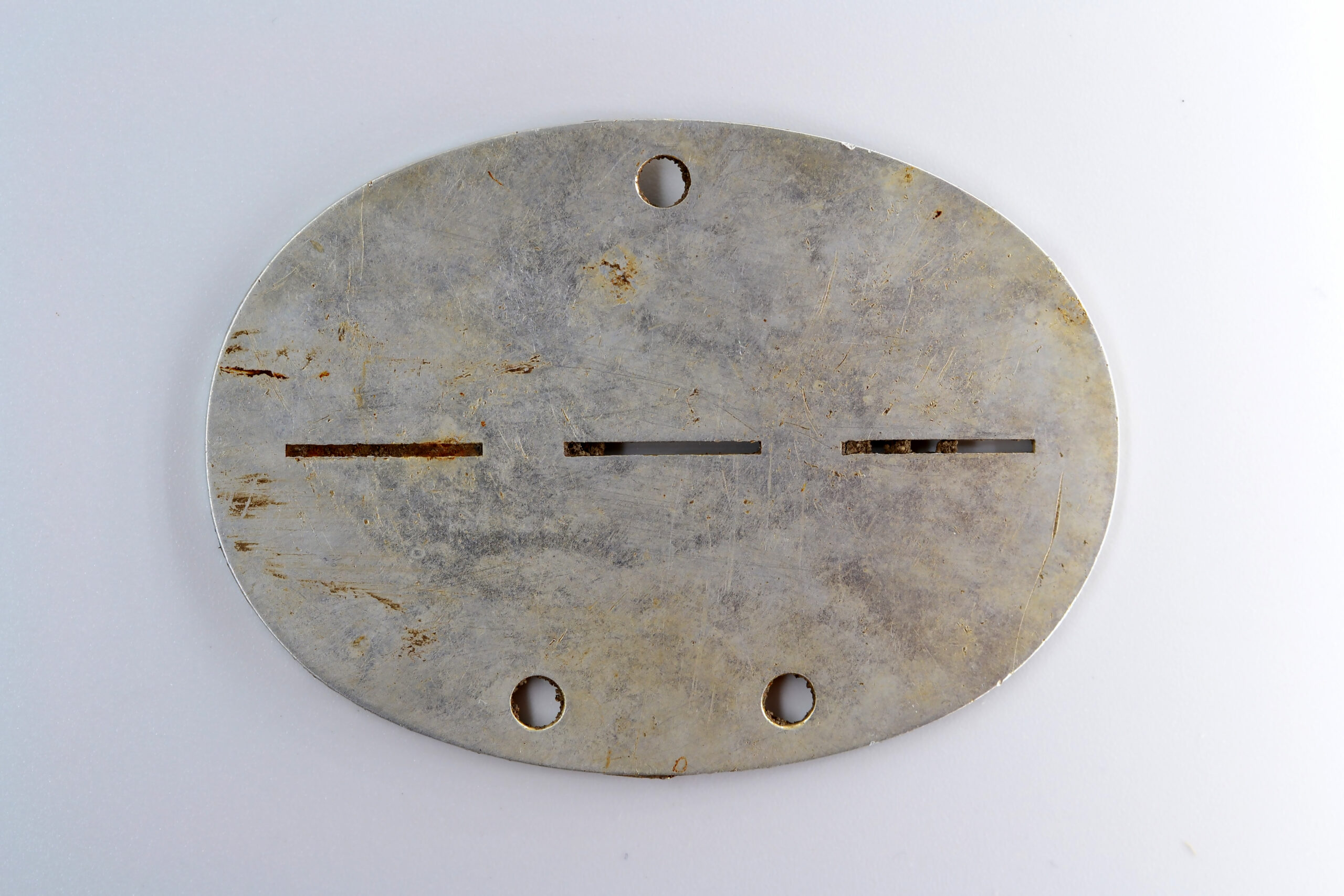 The tag itself is in fantastic condition, considering it has been buried for so long. The owner scratched a B in it, probably his bloodgroup, and an E, but we do not know what that means. In any case a perfect tag from a famous battlefield. In 1940, this regiment took part in the battle of Dunkirk in France.