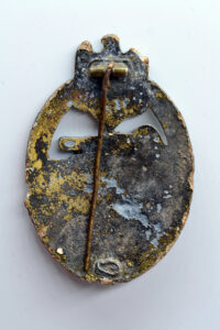 Very nice battlefield-found Panzer Assault Badge in Bronze (Panzerkampfabzeichen in Bronze), with only minor damage.