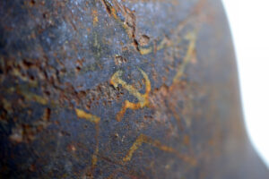 Perfect and solid example of a Red Army SSH-36 helmet, with the classic Soviet star decal preserved on the front side. It was produced from 1936 till 1941, and was the helmet worn during the invasion of Poland and the Baltics in 1939 and 1940, and during the Winter War in Finland.