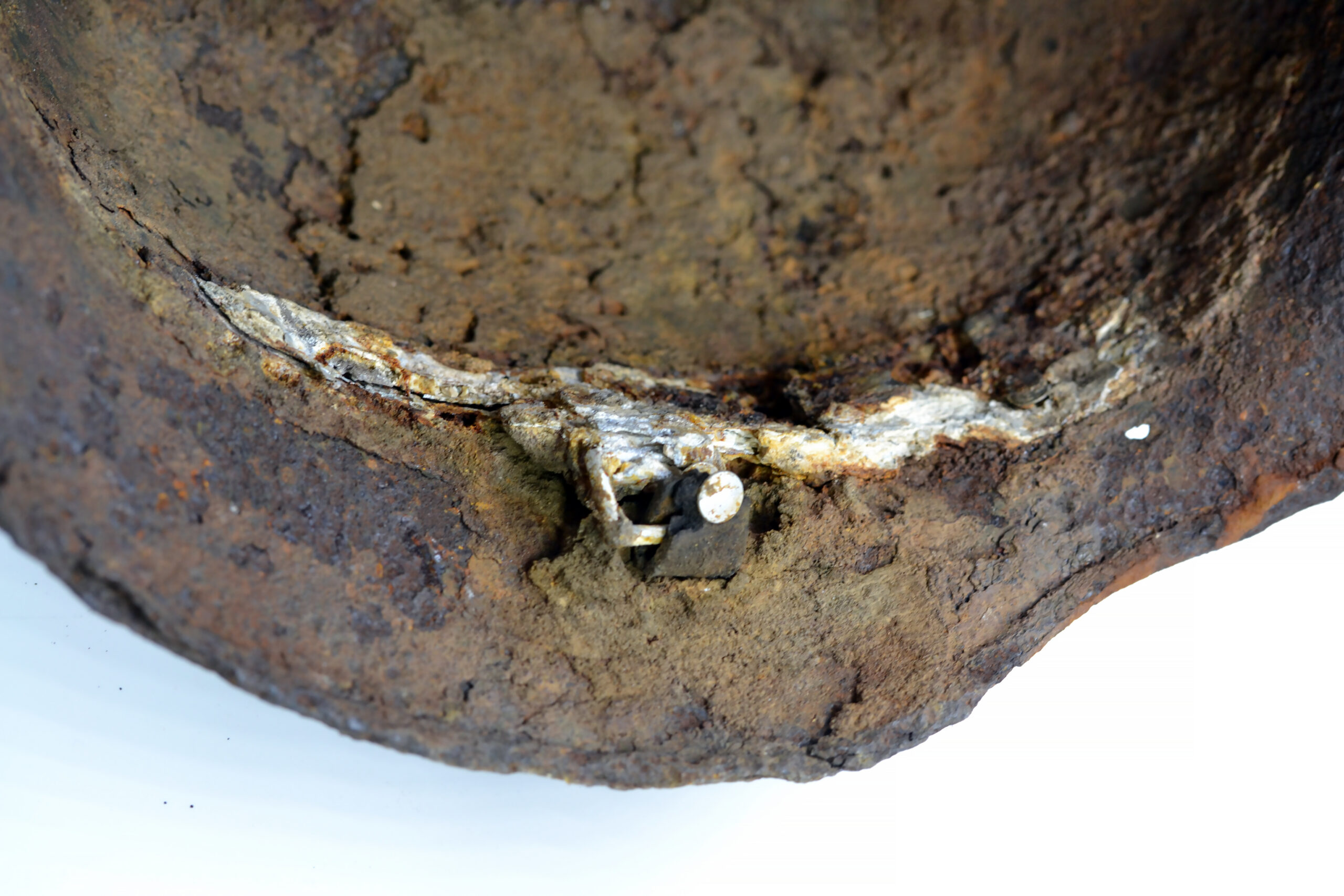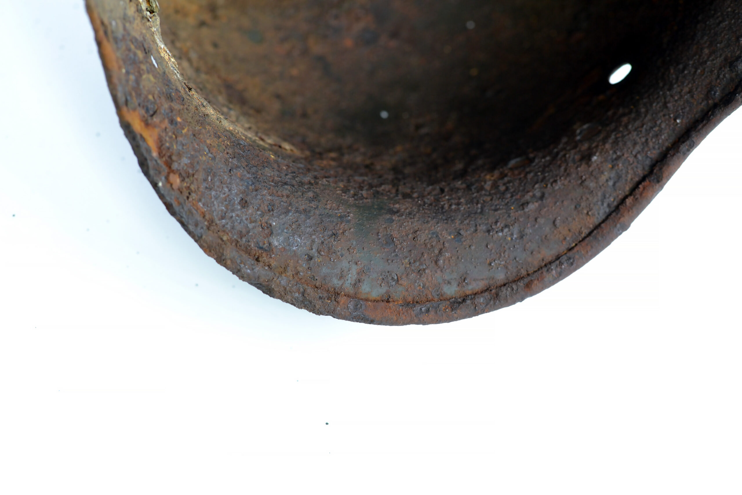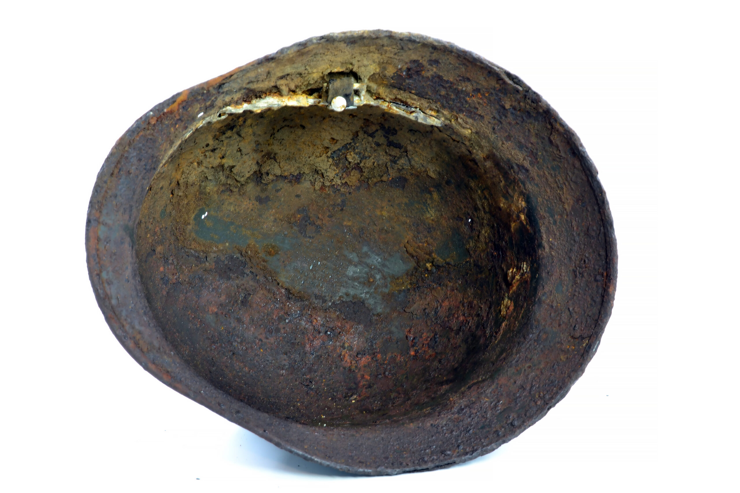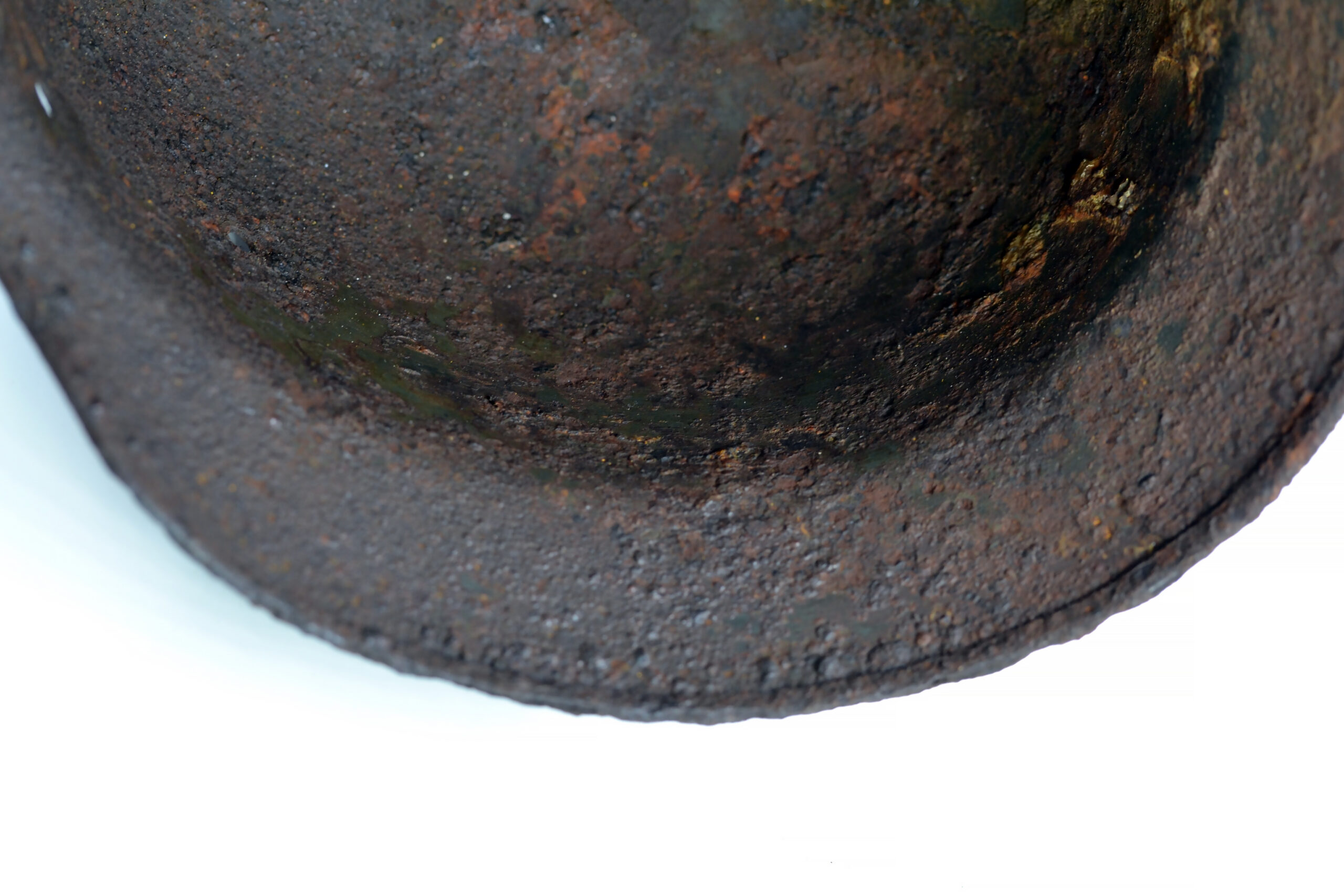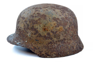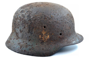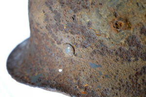 On 14 February 1943, the III./”Der Führer” attacked Okhoche, and the owner of this helmet was one of the casualties that day. The helmet is in good and solid condition, considering it was buried on the battlefield for such a long time, with remnants of the paint and the typical Quist runes decal partially preserved.