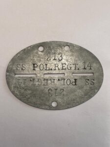 SS-Polizei-Regiment 14 was reformed into SS-Polizei-Grenadier-Division 91 in March 1945, and became part of the 35. SS-Polizei-Grenadier-Division. The tags were found in the sector of this division, which was later destroyed in the Halbe pocket in April 1945.