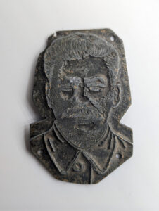 Very nice and probably unique zinc stamp, measuring about 15 cm, showing the portrait of Stalin.