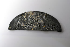 Super nice and rare half zinc Erkennungsmarke from a member of the Stab/SS-Totenkopf-Artillerie-Regiment. A very rare tag, because most members of such units already had tags from training and replacement units.