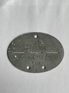 Super nice and sharp-looking zinc Erkennungsmarke from a member of the 2./Pionier-Bataillon 384, which was the engineer battalion of the 384. Infanterie-Division.
